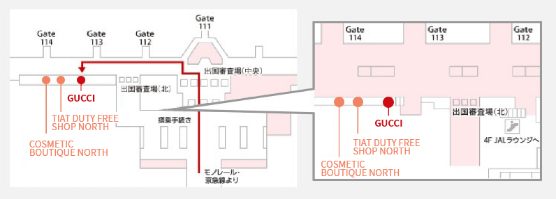 「GUCCI 羽田空港第3ターミナル店」はJAL DUTYFREEが運営している免税店です。